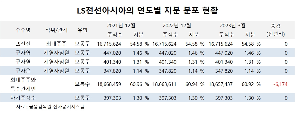 이미지 확대보기LS전선아시아의 최대주주는 LS전선으로 지분 54.58%를 보유하고 있습니다.