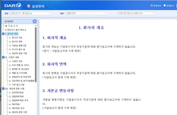이미지 확대보기기업들이 공시한 1분기 분기보고서를 보면 예전과 달리 많은 항목들이 누락되어 있어 당해 분기에 일어난 사안에 대해 알 수 없게 돼 공시 정보를 활용하는데 어려움을 겪고 있다는 지적이 나오고 있습니다.