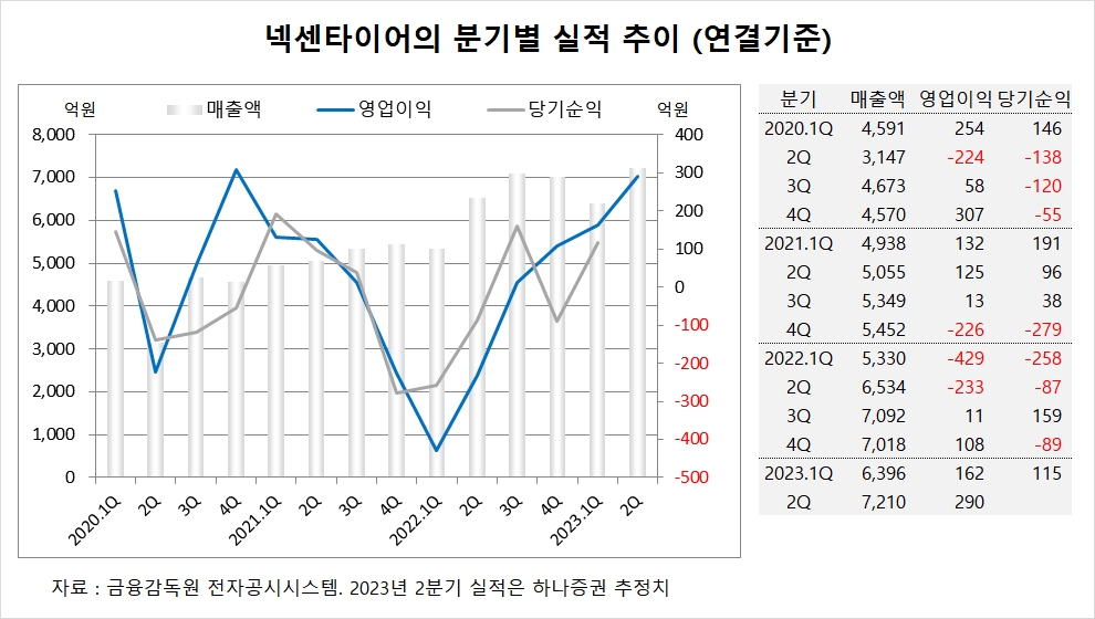하나증권은 넥센타이어의 2분기 연결기준 매출액이 7210억원, 영업이익이 290억원에 이를 것으로 전망하고 있습니다.