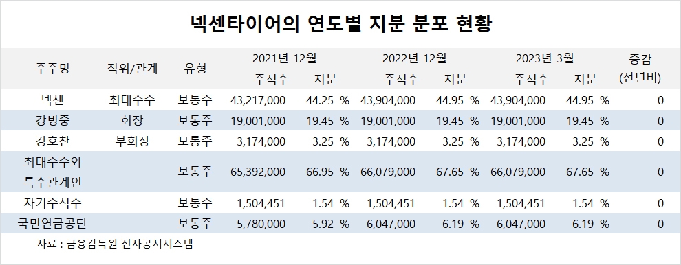 이미지 확대보기넥센의 최대주주는 강호찬 부회장으로 지분 48.49%를 갖고 있습니다.