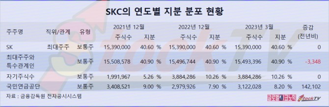 국민연금공단은 2023년 1분기 SKC 주식을 매입해 지분을 높였습니다.