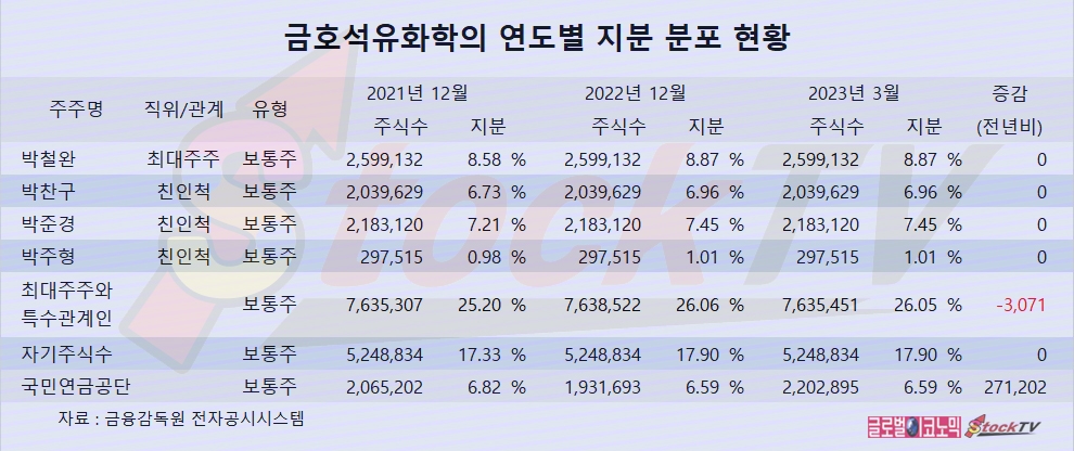 국민연금공단은 2023년 1분기 금호석유화학 주식을 사들여 지분을 높였습니다.