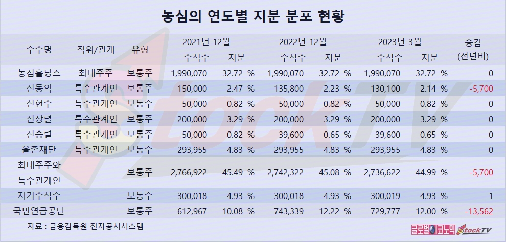 농심은 지난 2007년부터 갖고 있던 자기주식 30만여주를 2023년 3월까지 그대로 유지하고 있습니다.
