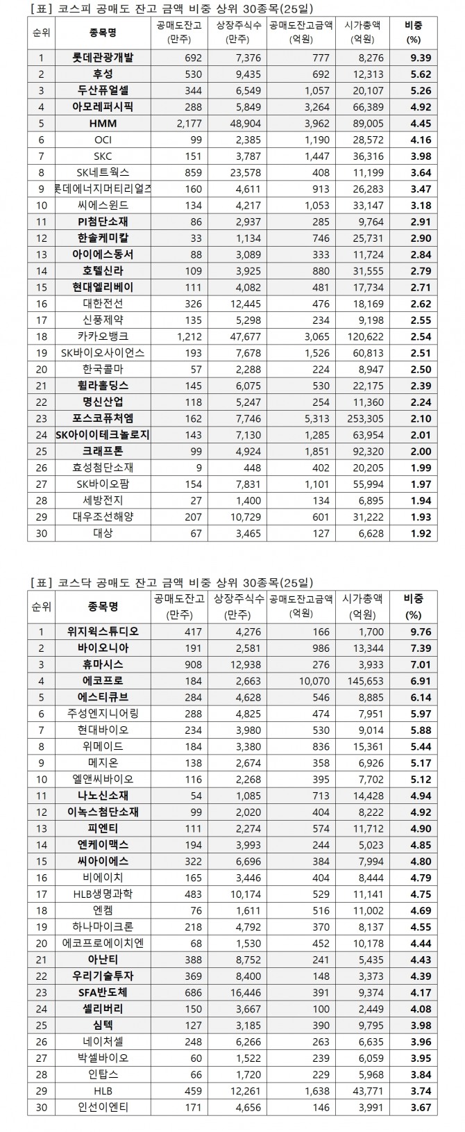 16위 비에이치 404억원(4.79%), 17위 HLB생명과학 528억원(4.75%), 18위 엔켐 516억원(4.69%), 19위 하나마이크론 370억원(4.55%), 20위 에코프로에이치엔 451억원(4.44%), 21위 아난티 240억원(4.43%), 22위 우리기술투자 148억원(4.39%), 23위 SFA반도체 390억원(4.17%), 24위 셀리버리 99억원(4.08%), 25위 심텍 390억원(3.98%), 26위 네이처셀 262억원(3.96%), 27위 박셀바이오 239억원(3.95%), 28위 인탑스 229억원(3.84%), 29위 HLB 1637억원(3.74%), 30위 인선이엔티 146억원(3.67%)