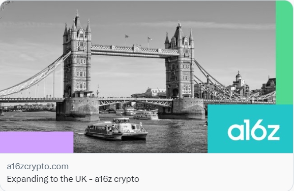 미국 기반 a16z 크립토, 런던에 첫 해외 사무소 개설