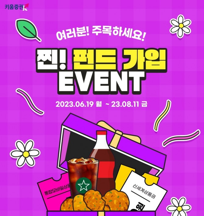 이미지 확대보기19일 키움증권에 따르면 이벤트 대상 펀드를 100만원 이상 매수 시 추첨을 통해 경품을 지급하며 1000만원 이상 매수시 순증 금액에 따라 1만원 또는 5만원 상품권도 지급한다.