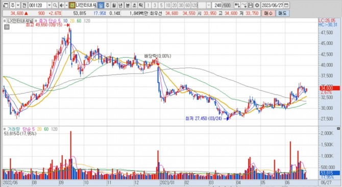이미지 확대보기LX인터내셔널의 주가는 27일 오전 9시 10분 현재 전일보다 900원(2.67%) 오른 3만4600원에 매매되고 있습니다.