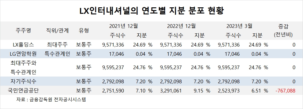국민연금공단은 올해 1분기 LX인터내셔널 주식 76만여주를 팔아 지분을 낮췄습니다.