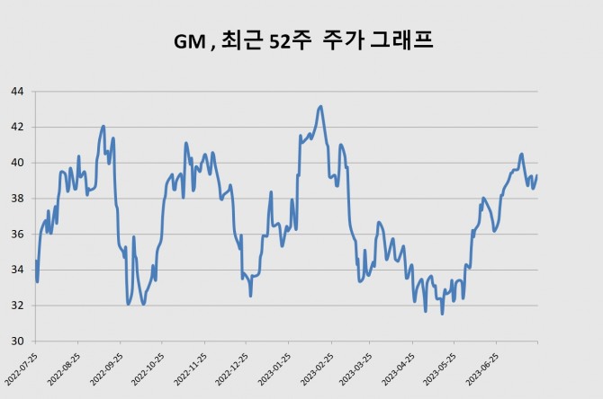 이미지 확대보기GM 주가는 지난 24일(현지시각) 39.3달러로 마감하면서 40달러 회복을 앞두고 있다.