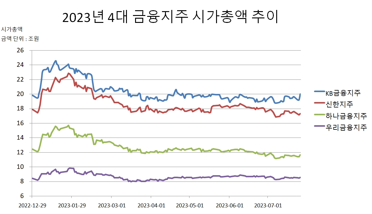 KB금융지주는 전일 4.09% 상승하면서 약 3개월만에 시총 20조원대로 회복한 바 있다.
