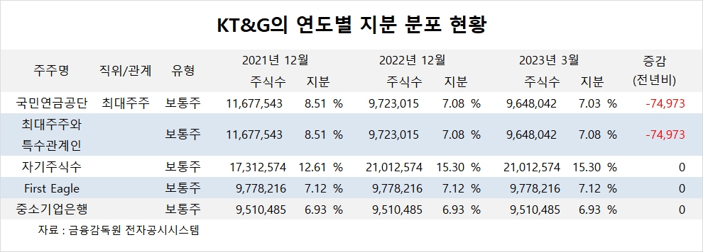 이미지 확대보기KT&G는 중소기업은행이 지분 6.93%를 갖고 있습니다.