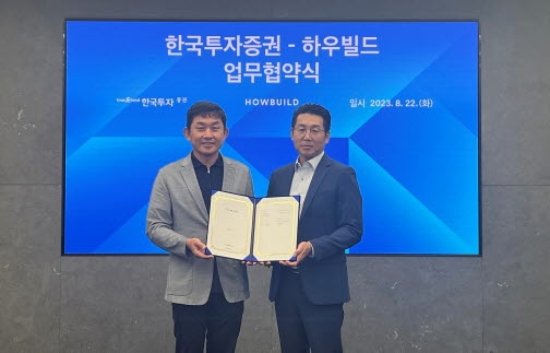이미지 확대보기22일 한국투자증권은 건축 IT 플랫폼 및 건설사업관리(CM) 업체인 하우빌드와 부동산자문 관련 업무협약을 맺었다고 밝혔다. 하우빌드는 건축주와 건축사, 건설사 등을 연결해 시공사 공모, 공사 대금 관리 등 건축 전반을 관리하는 온라인 플랫폼 업체다.