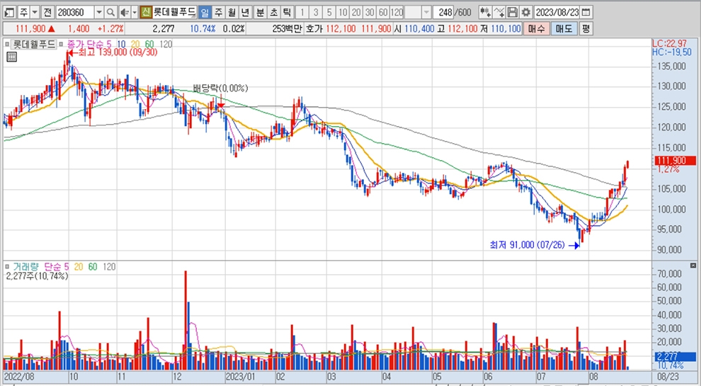 이미지 확대보기롯데웰푸드의 주가는 23일 오전 9시 20분 현재 전일보다 1400원(1.27%) 오른 11만1900원에 거래되고 있습니다.