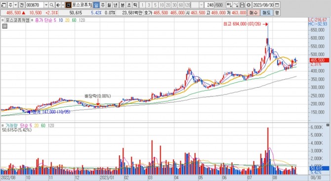 DB금융투자는 포스코퓨처엠이 전기차 수요 둔화 및 양극재 출하량 부진 우려에도 단결정 양극재 출하량이 증가하며 3분기 실적이 전분기 대비 대폭 개선될 것으로 전망해 포스코퓨처엠에 대해 투자의견 매수을 유지하고 목표주가를 기존 41만원에서 57만원으로 상향 조정했습니다.