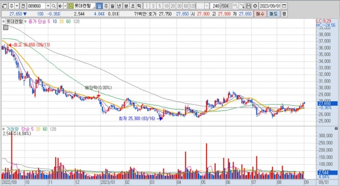 이미지 확대보기롯데렌탈의 주가는 1일 오전 9시 3분 현재 전일보다 100원(0.36%) 내린 2만7650원에 거래되고 있다.