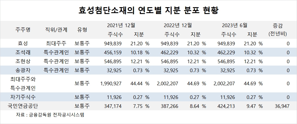 국민연금공단은 올해 상반기 효성첨단소재 주식 3만여주를 사들여 지분을 높였다.