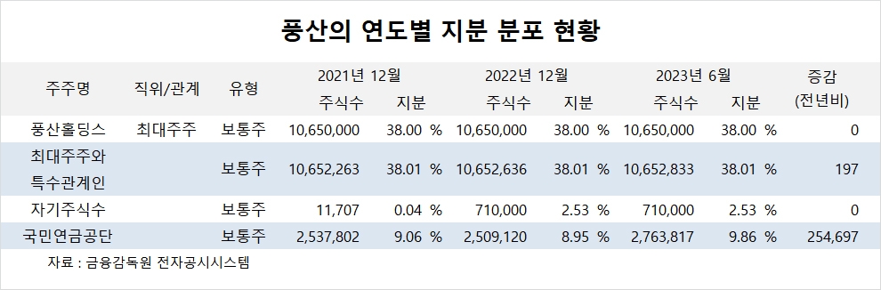 국민연금공단은 올해 상반기 풍산 주식을 25만주를 매입해 지분을 높였다.
