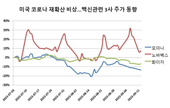 미국 주요 백신 기업인 모더나·화이자·노바백스 등은 하반기 이후 다소 부진한 주가 흐름을 보이고 있는 상황이지만, 코로나19가 재확산할 경우 주가에도 영향을 줄 것으로 보인다.
