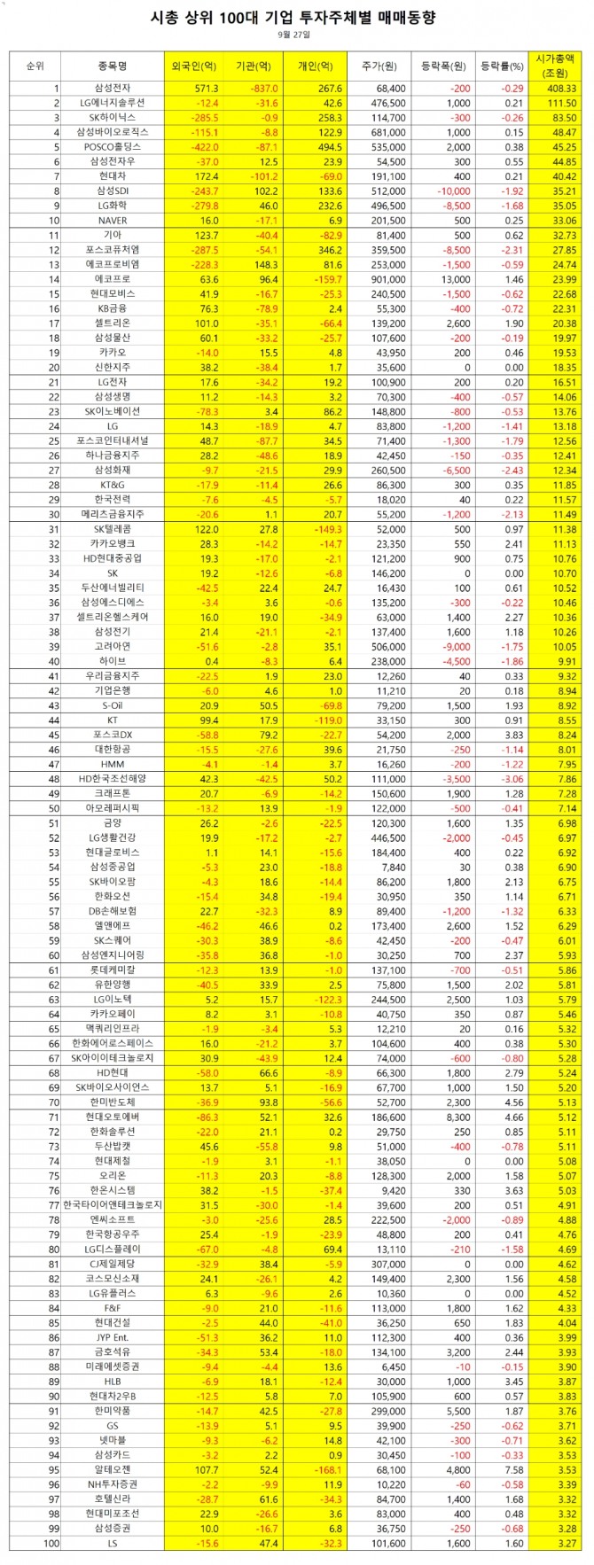 이미지 확대보기[외국인] 유가증권시장 순매수 상위종목
