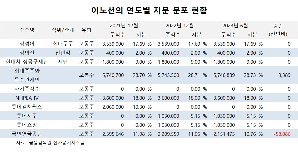 이미지 확대보기이노션의 최대주주는 정성이 고문으로 지분 17.69%를 보유하고 있다.