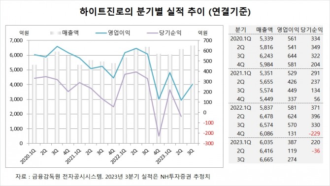 NH투자증권은 하이트진로의 3분기 연결기준 매출액이 6665억원, 영업이익이 274억원에 이를 것으로 내다봤다. 3분기 영업이익은 시장 컨센서스인 354억원을 하회할 전망이다.