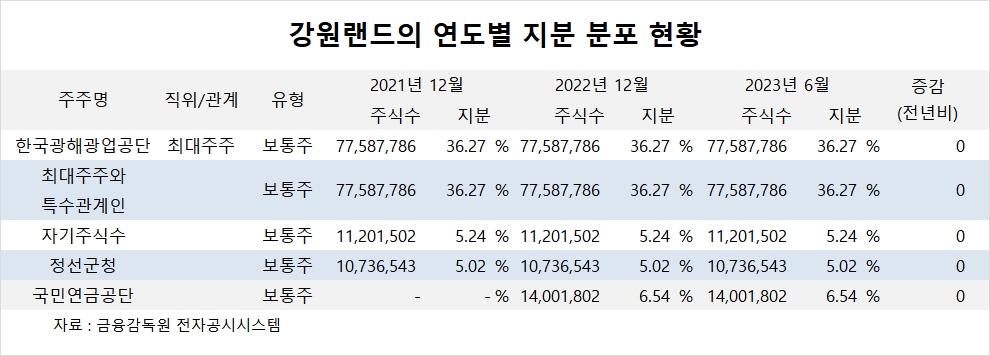 이미지 확대보기강원랜드의 최대주주는 한국광해광업공단으로 지분 36.27%를 보유하고 있다.
