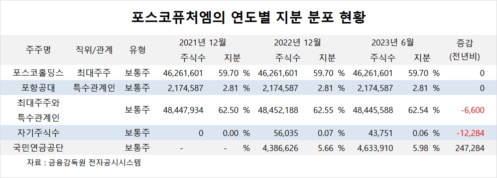 이미지 확대보기포스코퓨처엠의 최대주주는 포스코홀딩스로 지분 59.70%를 보유하고 있다.