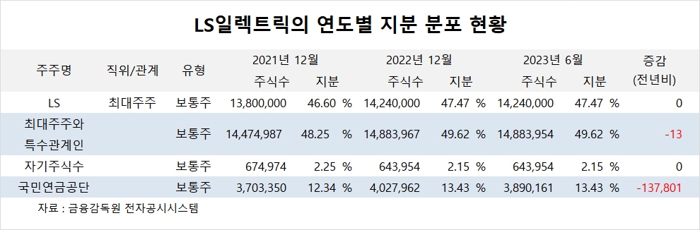 국민연금공단은 올해 상반기 LS일렉트릭 주식을 13만여주 매각해 지분을 낮췄다.