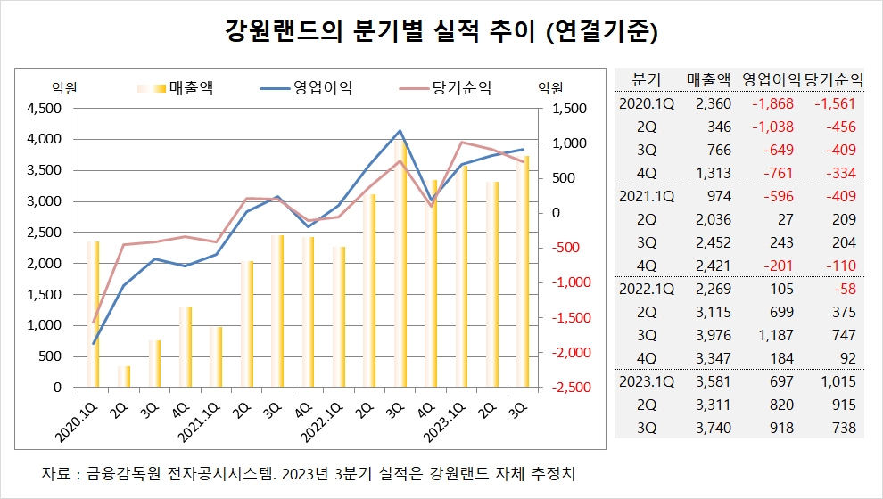 하나증권은 강원랜드의 올해 연결기준 매출액이 1조3760억원, 영업이익이 2809억원, 당기순이익이 3002억원에 달할 것으로 추정했다.