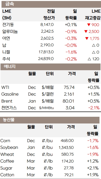 LME 시장에서 주요 금속들은 대부분 약세를 보인 가운데 전기동은 소폭 상승해 눈길을 끌었다.