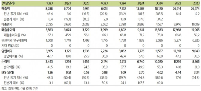 이미지 확대보기매출총이익은 135억8300만 달러로 매출총이익률은 무려 75%다. 지난 1분기 66.8%, 2분기 71.1% 등 그 상승세가 지속되고 있다. 지난 2010년 30%대 전후에서 무려 2배 이상 뛴 수치로 이 기간 동안 꾸준히 오름세를 보였다.
