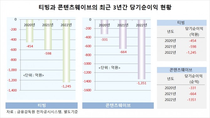 콘텐츠웨이브의 별도기준 당기순이익도 지난 2020년 –331억원, 2021년 –664억원, 2022년 –1351억원으로 적자가 심화되고 있는 실정이다. 콘텐츠웨이브도 올해 3분기 말 797억원의 적자를 기록하며 SK스퀘어의 부담이 가중되고 있는 형편이다.