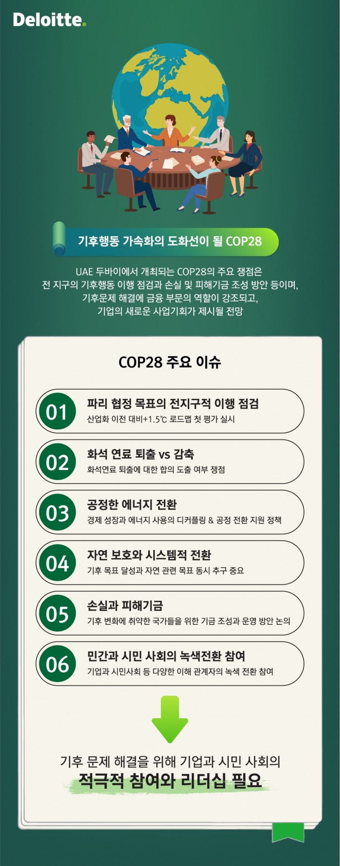한편, ‘COP28 어젠다: 민간 부문의 추진력이 필요할 때다’ 리포트 전문은 딜로이트 인사이트 앱 혹은 딜로이트 홈페이지에서 확인할 수 있다.