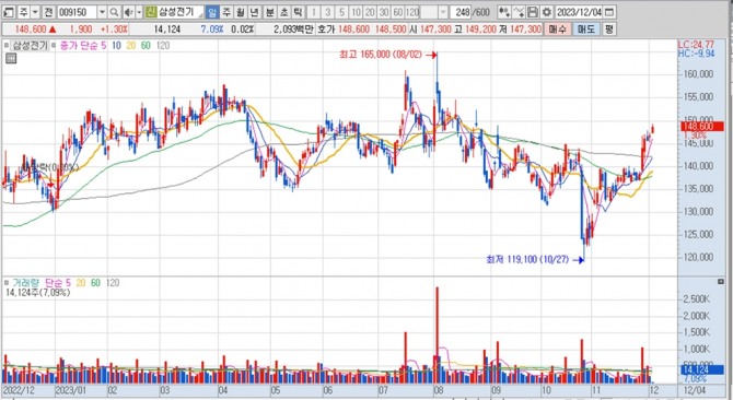 이미지 확대보기삼성전기의 주가는 4일 오전 9시 3분 현재 전일보다 1900원(1.30%) 오른 14만8600원에 거래되고 있다.