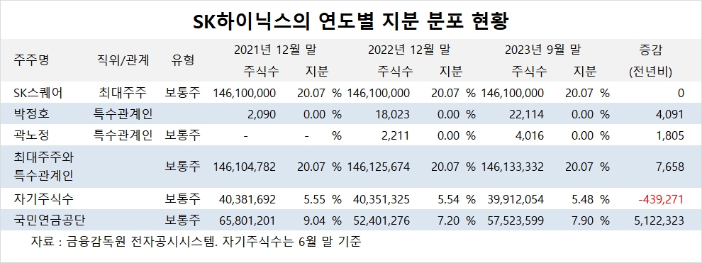 국민연금공단은 지난해 3분기까지 SK하이닉스 주식 512만여주를 사들여 지분을 높였다.