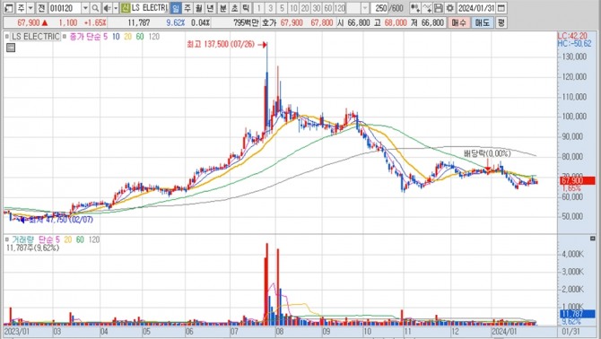 이미지 확대보기LS일렉트릭의 주가는 15일 오전 9시 10분 현재 전일보다 1100원(1.65%) 오른 6만7900원에 매매되고 있다.