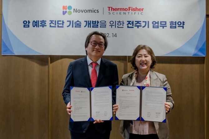 위장관암 지식 플랫폼 기업 노보믹스는 세계적인 과학기업 써모 피셔 사이언티픽솔루션스 유한회사(Thermo Fisher Scientific Solutions LLC, 이하 써모 피셔 사이언티픽)와 업무 협약을 체결했다고 14일 밝혔다.