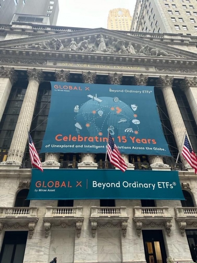 뉴욕증권거래소에서 미래에셋자산운용 미국 ETF 운용 자회사 Global X의 15주년을 기념하는 타종벨 소리가 울려퍼졌다.