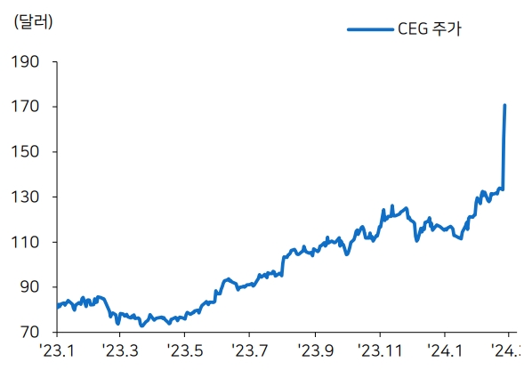 황수옥 메리츠증권 연구원은 “콘스텔레이션에너지는 에너지 생산 믹스에서 원자력 비중이 가장 크다”며 “IRA 보조금 수혜까지 받으면서 생산 단가 측면에서 수혜를 보고, 평년 대비 높아진 전기료 영향으로 수요, 공급 측면에서 동시에 마진이 개선될 것”으로 전망했다.
