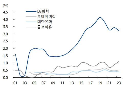 한편, 과거 일본 석유화학 업체들은 장기 구조조정 과정에서 범용부문 통폐합, 포트폴리오 고부가화, IT소재와 농업 등 사업분야 확장에 집중했다. 하이투자증권은 LG화학이 일본 화학 기업들과 가장 유사한 형태의 구조조정을 진행하고 있다고 진단했다.