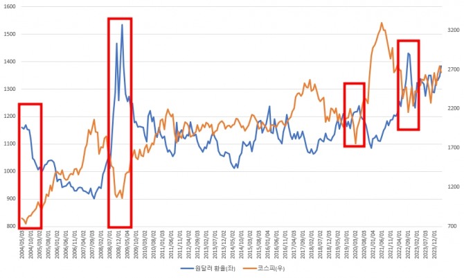 실제로 과거 원·달러 환율이 상승하는 등 위험자산 기피 현상이 확대되고 그 분위기가 정점에 달했을 때, 시장은 반등하기 시작했다.