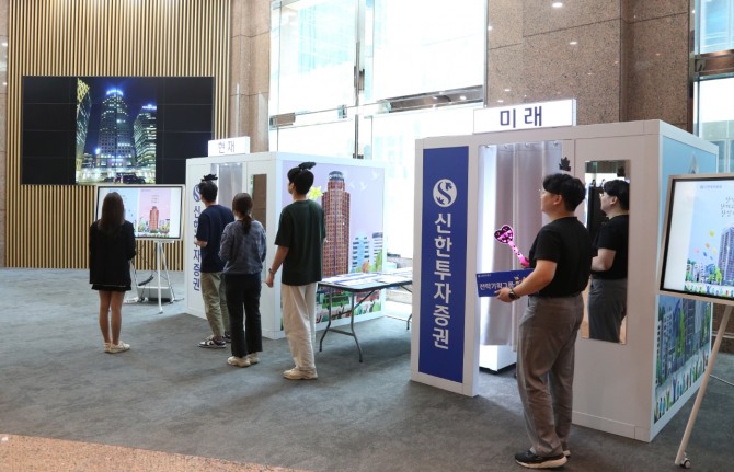 ‘현재‘부스에서는 신한투자증권타워를 배경으로, ‘미래’부스에서는 여의도 TP타워를 배경으로 사진을 남길 수 있다.