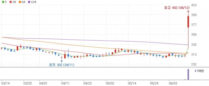 이미지 확대보기12일 한국거래소에 따르면, 오후 2시1분 현재 큐캐피탈 주가는 전 거래일 보다 88원(28.39%) 상승한 398원에 거래되고 있다.