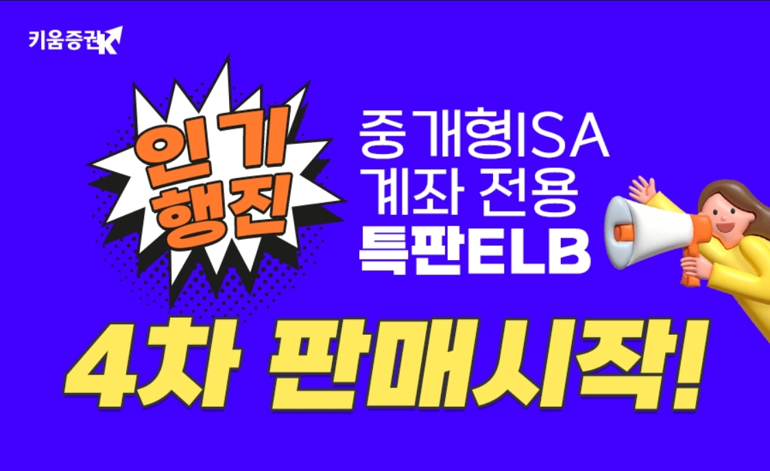 이미지 확대보기키움증권은 이달 14일부터 20일까지 중개형ISA계좌 전용 세전 연 5%의 1년 만기 특판ELB를 추가로 판매한다고 18일 밝혔다.