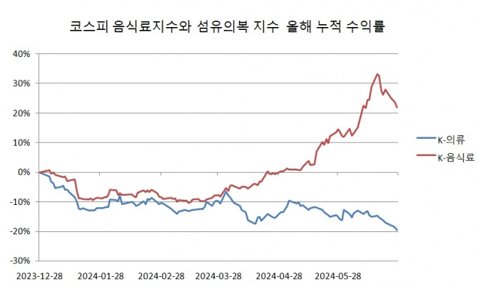 이는 코스피 음식료품 지수가 올해들어 21.90% 급등한것과 비교된다.