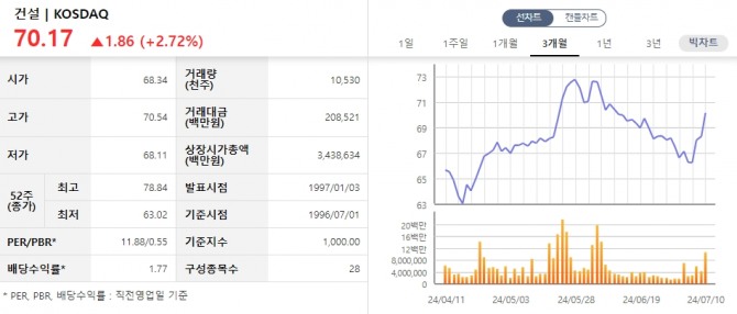 이미지 확대보기11일 한국거래소에 따르면, 코스닥 건설업 지수는 지난 8일부터 10일 까지 3거래일 연속 상승했다.