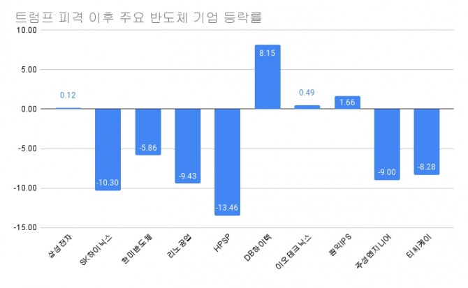 파이낸셜타임스(FT)는 트럼프 발언이 투자자들을 흔들며 반도체 주식이 폭락했다고 짚었다.