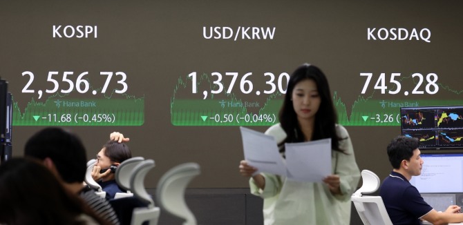 8일 한국거래소에 따르면 이날 코스피는 전일 대비 0.45%(11.68포인트) 하락한 2556.73을 기록하며 장을 마감했다.
