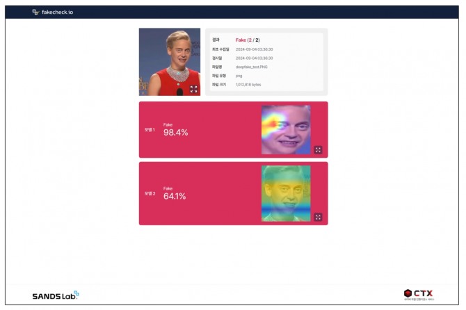 인공지능(AI) 기반 보안기업 샌즈랩은 생성형 AI 역기능 중 하나인 딥페이크를 탐지하는 서비스 페이크체크(fakecheck.io)를 출시했다고 5일 밝혔다.