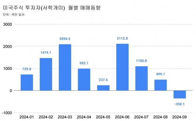 투자자 입장에선 지수가 고점에 달한 상태에서 환 손실을 피하기 위해 미리 주식을 매도하게 되며, 9월 미국 주식 순매도는 이 같은 움직임이 반영된 결과로 풀이된다.